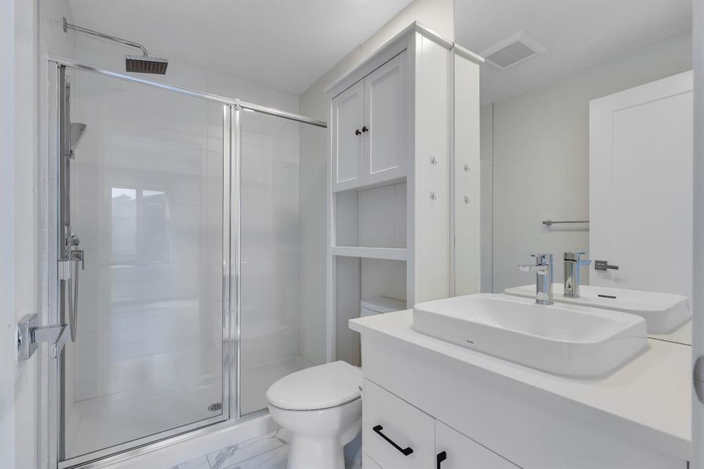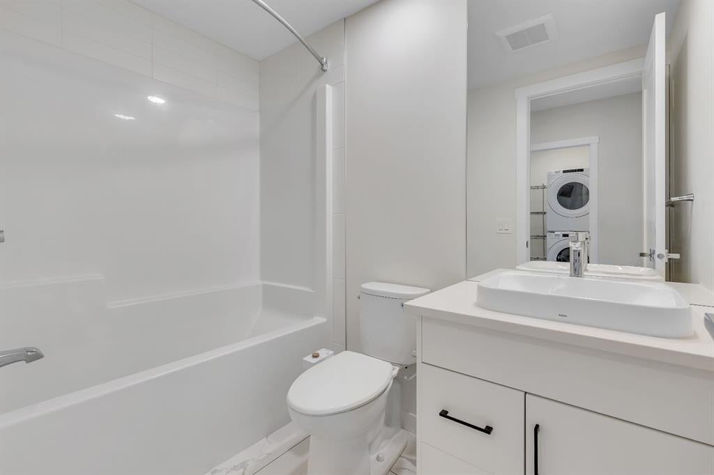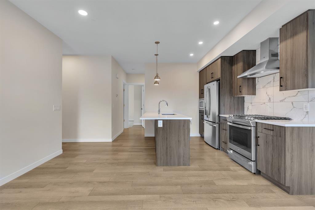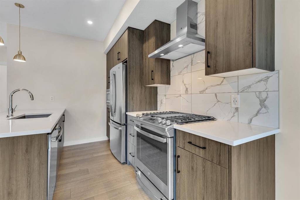 ***Open House Saturday October 18th from 1:00-3:30pm**Welcome to 514 Greenbriar Common NW in the sought after community of Greenwich Calgary! This Corner Lot Stacked Townhome offers upgraded luxury interior finishes with a vibrant and flexible design plan. This home features a 2 Bedrooms, 3 Full Baths design plan with a private Den and Full Bathroom on then bonus room entry level. This home also features a private and secure single-attached garage, and full builder show home upgrade package. This townhome combines the best parts of townhome privacy living mixed with the ease and configuration of an apartment condominium layout design. As you walk into this home you’ll find a full developed lower level bonus room containing a full bathroom (walk-in shower), a fully developed Den, under stair storage, and garage access. As you walk up the the 2nd level you’ll find an open concept design with living/dining room, and a full and bight upgraded kitchen with stainless gourmet appliance (gas stove), and large glass panelled balcony for quiet and peaceful views into Bowness and the surrounding community. These stacked townhome layouts were limited in number for this community (8 lower level plans only!). This homes configuration offers 2 bedroom, 2 full bath layout across one full floor with the primary bedroom providing additional corner windows with a ton of natural exposures with East siding and South backing natural light. The primary bedroom also offers a generously sized closet, and a full private ensuite with walk-in shower, upgraded tile-work and quartz counters. This home was constructed with luxury in mind and provides vinyl plank flooring throughout with Divine Floorings Voyage Line, Quartz Counter Tops Throughout, Upgraded Stainless Steel Gourmet Appliances, Upgraded Tile work in the Kitchen and Bathrooms, Upgraded Carpet + Underlay, Window Coverings Throughout sand 9ft Ceilings! Within the community of Greenwich you'll also find access to walkable commercial shopping with the Calgary Farmers Market, Analog Coffee, Market Wines, and Mash Pizza. The developer has also set up established Bike and Walkings Trails, and also boasts two Playgrounds within the community along with an Off-Leash Dog Park! Located only 18 minutes from Downtown Calgary, 12 Minutes to the University/Foothills Hospital, and only 45 Minutes from the Mountains, come find what makes Greenwich a Premiere NW Community to call home.