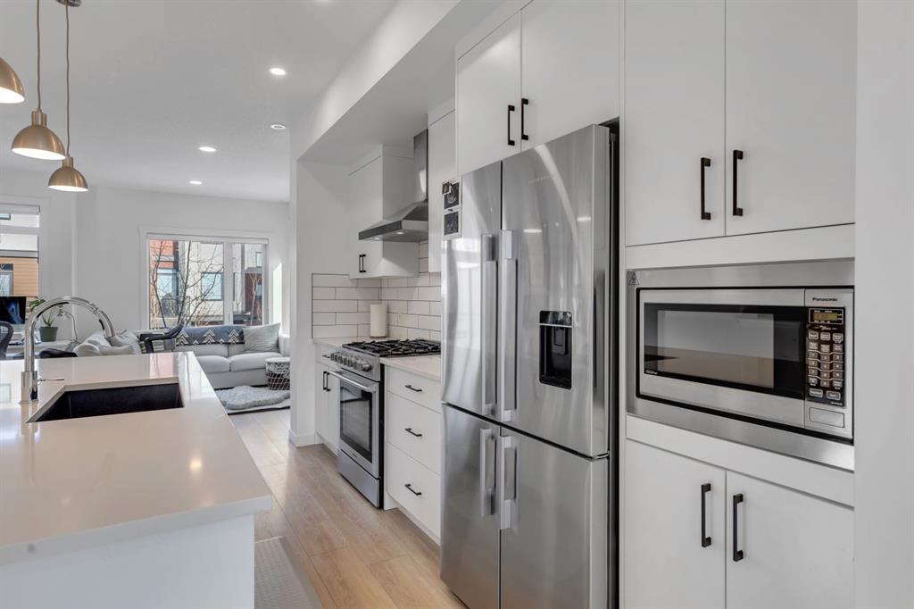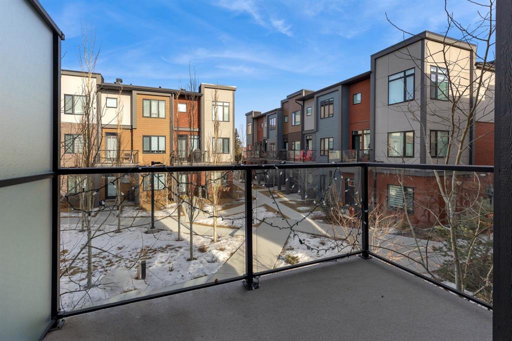 ** Open House Saturday March 21st from 2-4pm ** Welcome to the Amara Corner Lot Design Plan in Greenwich NW Calgary. This New York–inspired executive townhome offers 1,584 square feet of open-concept living in one of Calgary’s most desirable northwest communities. Featuring a 3-bedroom + den layout with 3.5 bathrooms, this thoughtfully designed home includes a double-wide garage with a single oversized door and a private driveway, maximizing both parking and storage. Professionally curated interior colour packages and an abundance of builder upgrades elevate the home throughout. Crafted with attention to detail, the residence showcases exceptional finishes paired with outstanding natural light. The north-facing frontage overlooks the community’s central courtyard and pathway system, while east-side and south-backing exposures flood the home with sunlight through expansive corner windows. Outdoor living is enhanced by a walkout exposed aggregate patio facing the courtyard and an elevated glass-panelled balcony, offering both privacy and scenic views. Inside, you’ll find luxury vinyl plank flooring on the main and lower levels, quartz countertops on all floors, 9-foot ceilings throughout, and stainless steel upgraded gourmet appliances, including a gas stove and chimney hood fan. High-efficiency features include triple-pane windows, a Navien on-demand tankless hot water system, and a heat recovery ventilator (HRV). This Amara corner plan is further enhanced by the Builder Show Home Package, adding a custom third full bathroom on the lower level, black interior door and bathroom accents, 8-foot solid interior passage doors, a full tile backsplash with custom grout design, and window coverings throughout. One of Landmark Homes’ most sought-after floor plans, this layout offers a functional galley kitchen with dedicated living and dining areas—perfect for entertaining and maximizing usable space. The exterior design channels classic New York brownstone style with James Hardie paneling, full brick accents, and stucco finishes for a contemporary, low-maintenance lifestyle. Ideally located just 18 minutes from downtown Calgary, 12 minutes to the University of Calgary and Foothills Hospital, under an hour to Banff and Canmore, and within walking distance to the new Calgary Farmers’ Market, this home offers unmatched convenience and community living. Book your showing today and discover what makes Greenwich NW an exceptional place to call home.